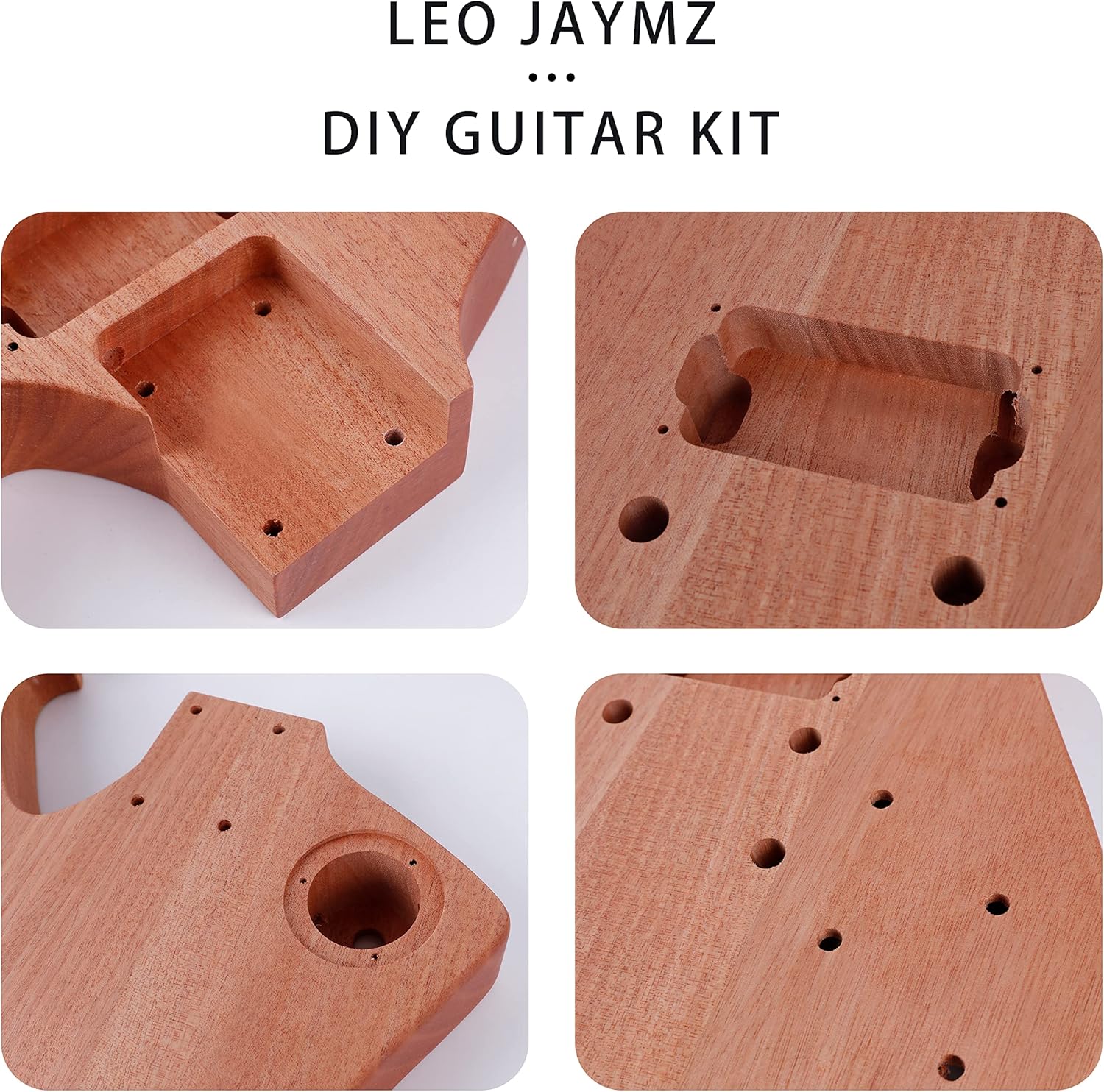 Leo Jaymz DIY Electric Guitar Kits with Mahogany Body and Maple Neck - Ebony Fingerboard and All Components Included (PS)