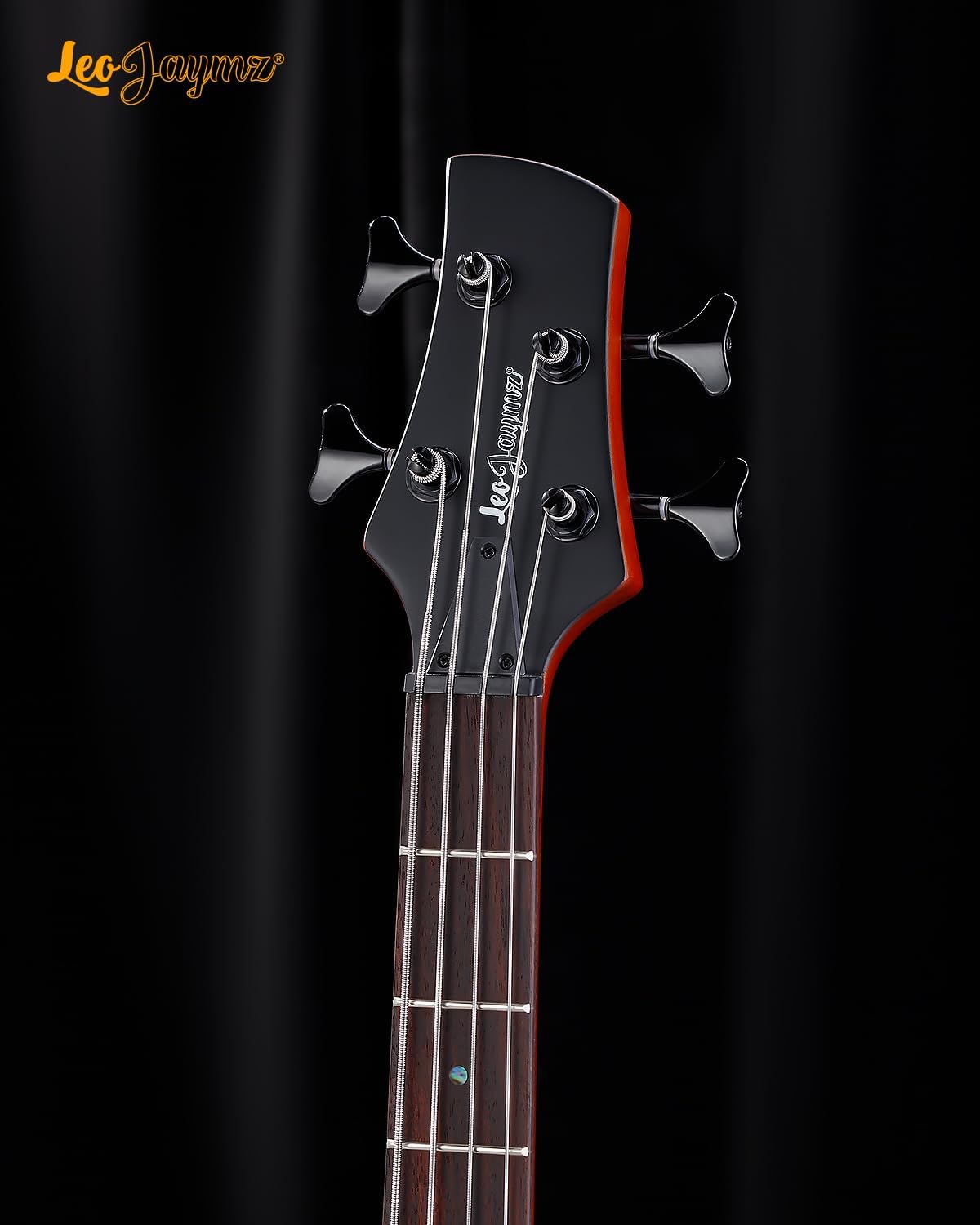 Leo Jaymz JB-400 4 String 34“ Scale Electric J Bass Guitar, Mahogany Body, Maple Fingerboard and Ash Veener, Roasted Maple Neck, J Bass Pickup, Classic Design for Beginners (JB Sunburst)
