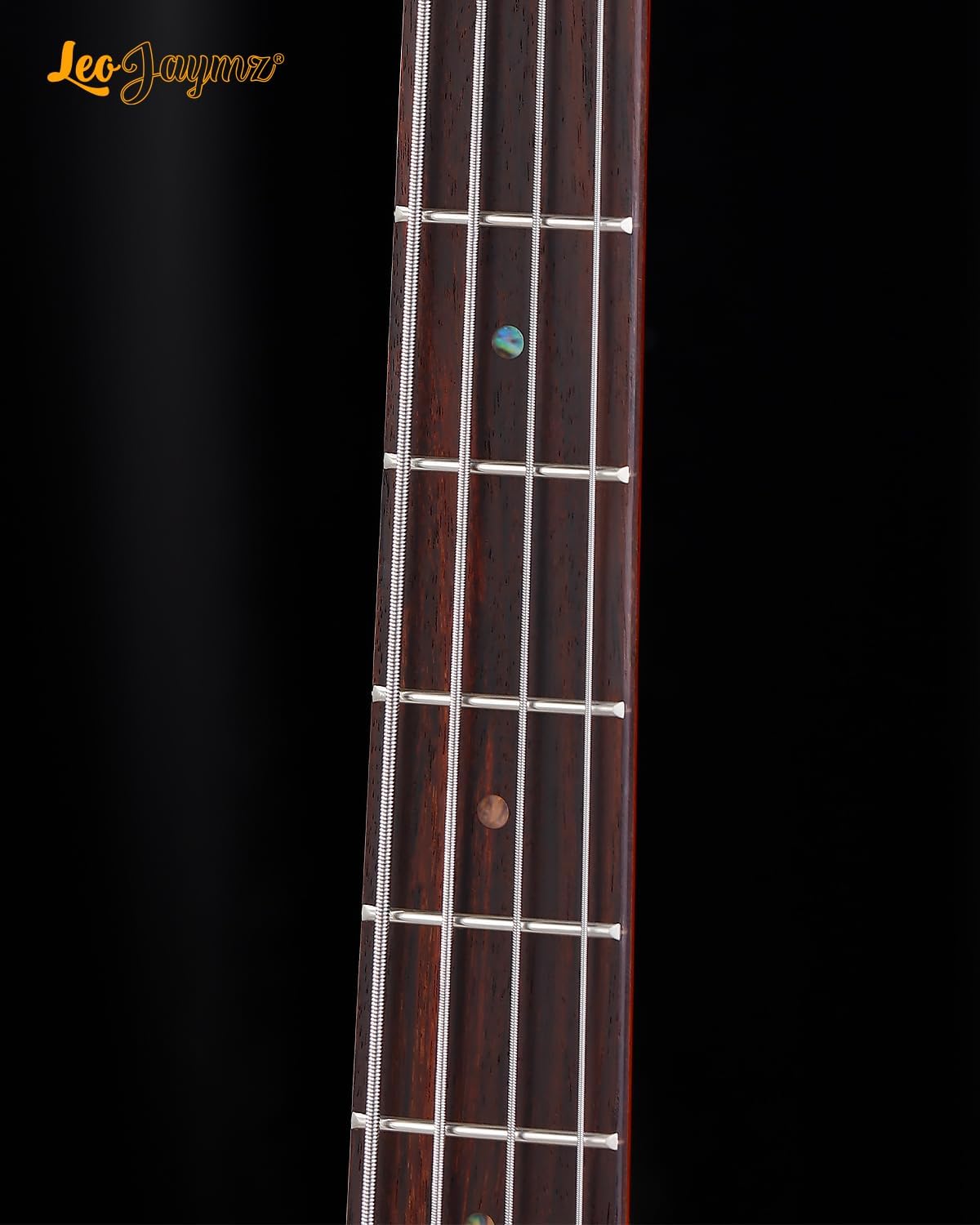 Leo Jaymz CB-400 4 String 34“ Scale Electric Bass Guitar, 24 Frets, Mahogany Body, Rosewood Fingerboard with Abalone Inlays, Roasted Maple Neck, H-H Pickups, Glossy Body Finish (CB Flame Blue)