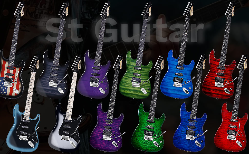 Leo Jaymz Electric Guitar Hurricane Deluxe Series, Burl Top, Mahogany Body, Roasted Maple Neck, Rosewood Fretboard, Locking Tuners, Rounded Frets, Case and Capo (Blue Colorful Deluxe)