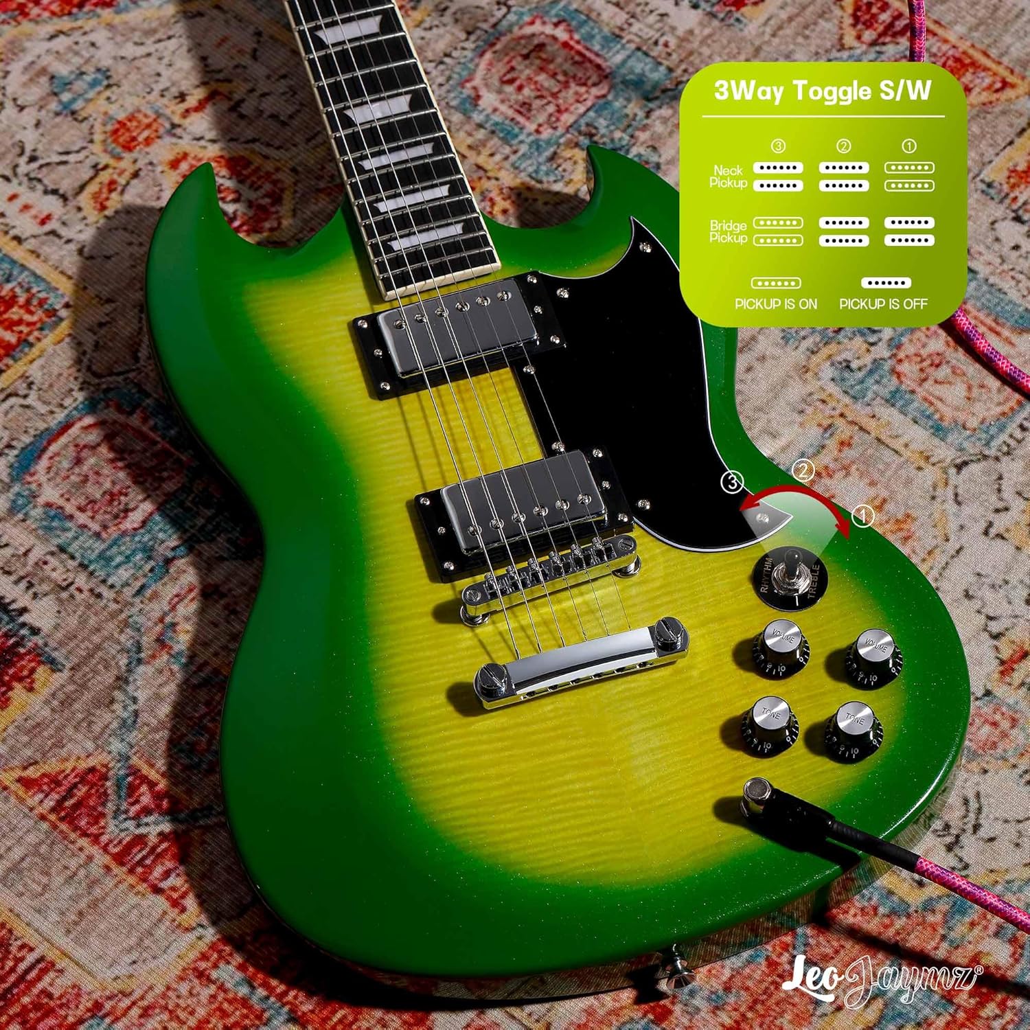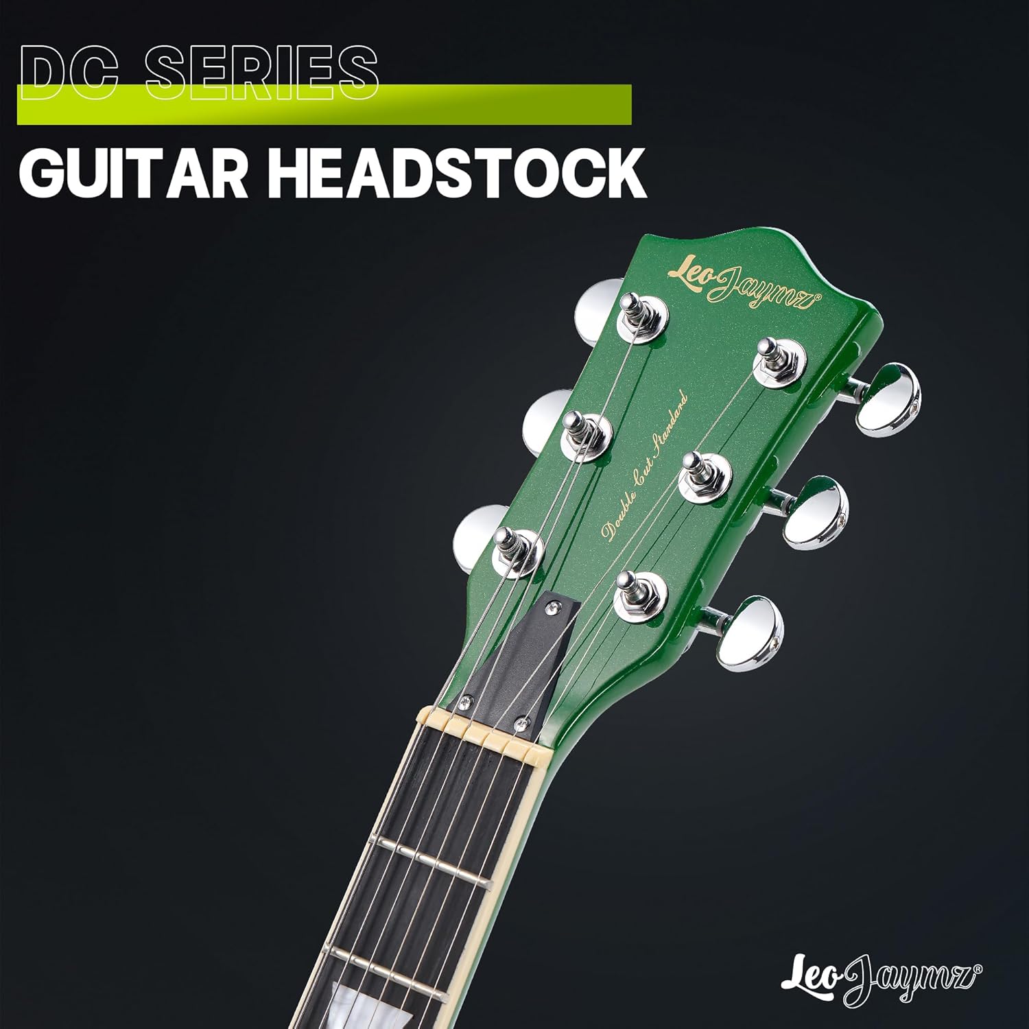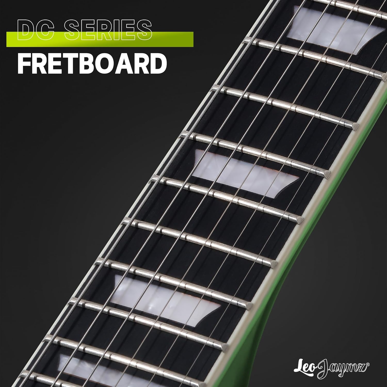 Leo Jaymz Electric Guitar Hurricane Deluxe Series, Burl Top, Mahogany Body, Roasted Maple Neck, Rosewood Fretboard, Locking Tuners, Rounded Frets, Case and Capo (Green Deluxe)