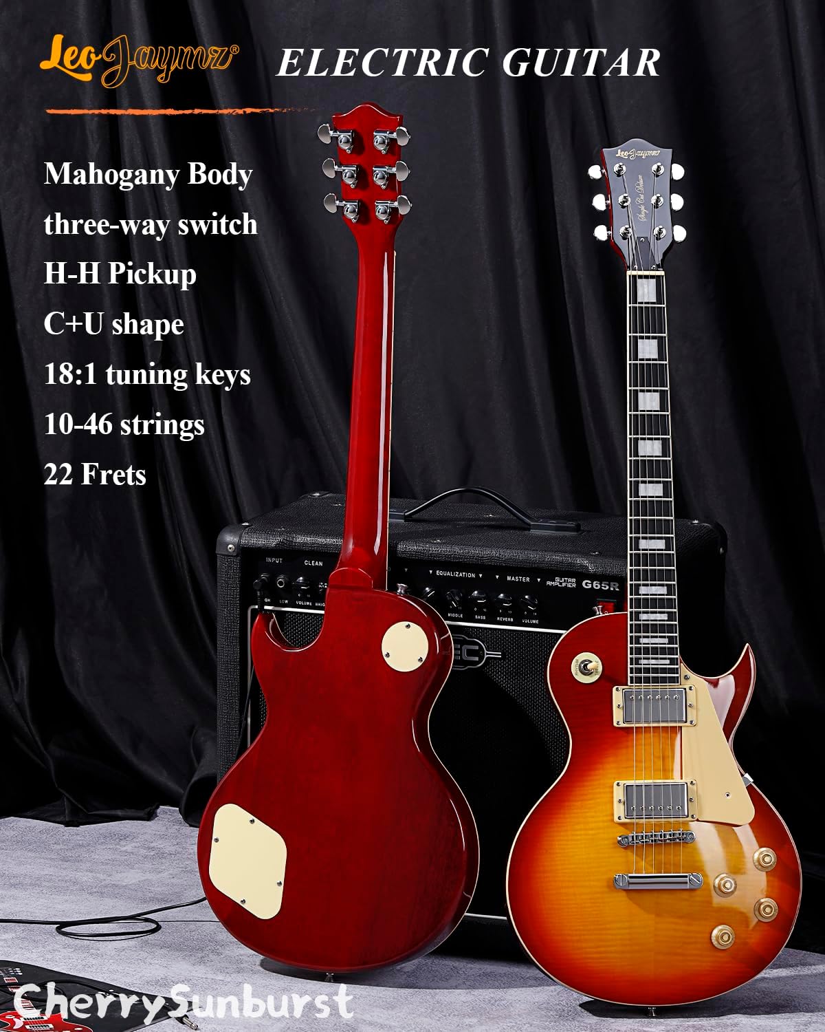 Leo Jaymz 24.75“ Single Cut Curved Top CherrySunburst Electric Guitar - Classic single cut top curved body - Mahogany Body and Neck,Ebony Fingerboard (Cherry SunBurst)