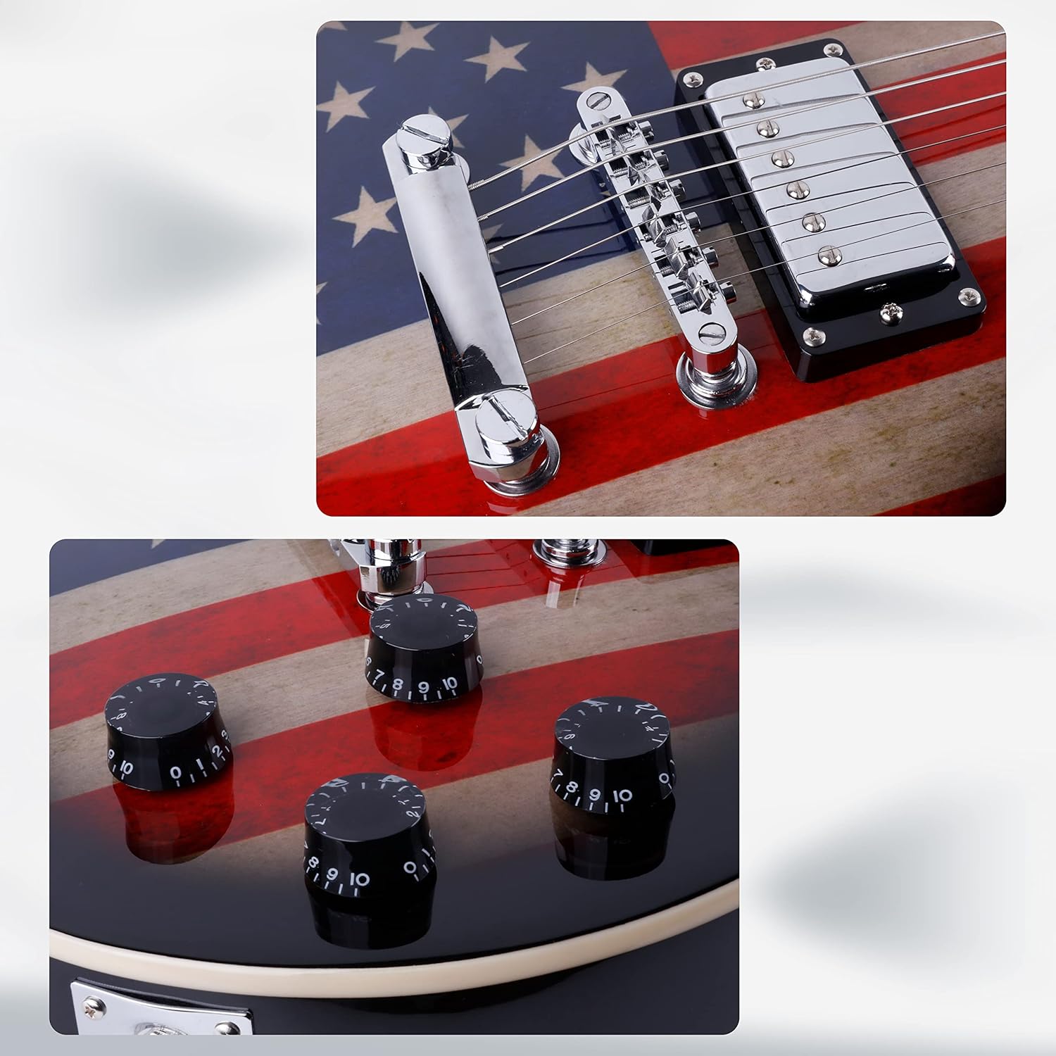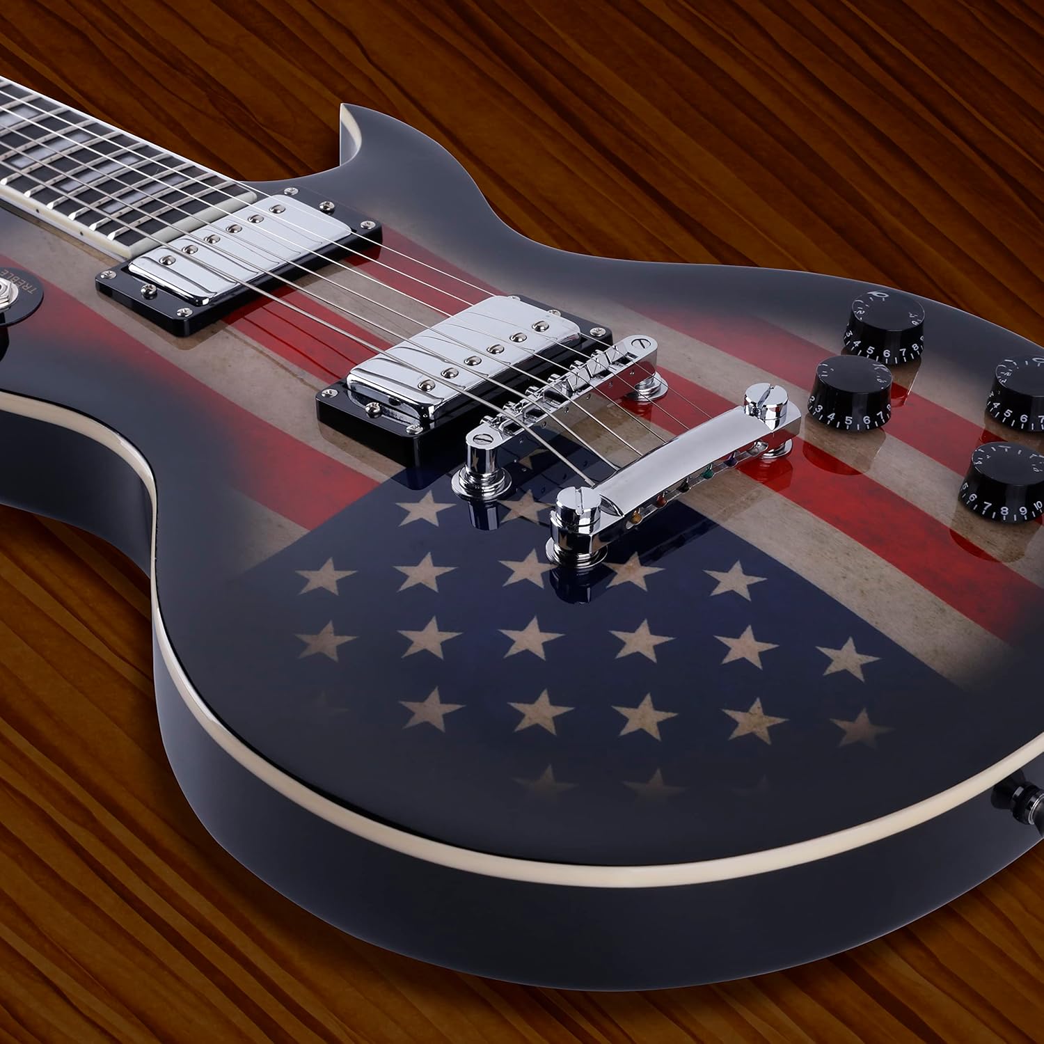 Leo Jaymz 39“ Full Size ST Style Electric Guitar Starter Kit with SSH Pickup, 5W Portable Amp, Tuner, Gig Bag, Strap or Accessories (US Flag)